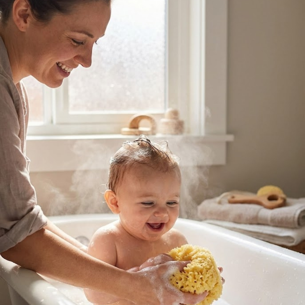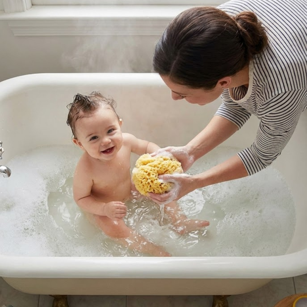 Doğal deniz süngerinden üretilmiştir, bebek cildine zarar vermez.